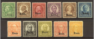 Scott #658-68: 1929 Kansas Ovpts Centering & Condition: Mint. Fresh. Generally Very Fine and CHOICE set. Reverse (Gum Side): Original gum. Never Hinged. Faults / Imperfections: None The item pictured is the actual item you are purchasing, unless otherwise noted. I also offer an interest-free layaway plan. Ask me about it!" All items will be mailed a day or two after payment is received. --------------------------------------------------------------------------------