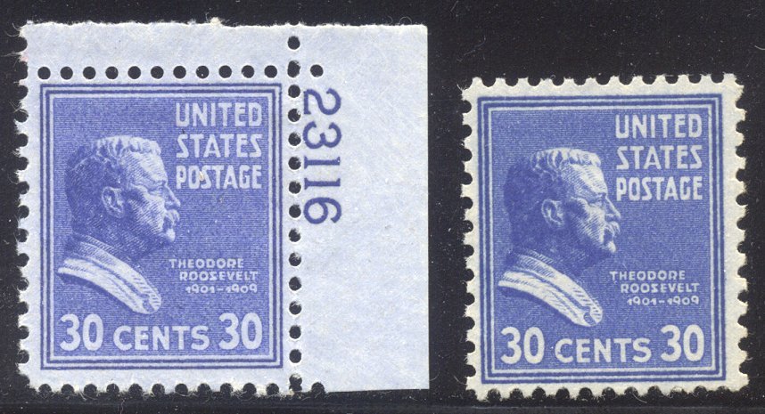 Scott #830b: 1938 30c Deep Blue Centering & Condition: Mint. Fresh. Fine-Very Fine and Quite Scarce (Stamp on the right). Reverse (Gum Side): Original gum. Never Hinged (despite cert calling Hinged). Faults / Imperfections: None The item pictured is the actual item you are purchasing, unless otherwise noted. I also offer an interest-free layaway plan. Ask me about it!" All items will be mailed a day or two after payment is received. -------------------------------------------------------------------------------- Please click any of the following to read: |
