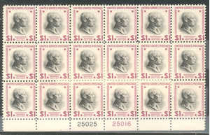 Scott #832g: 1938 $1 Magenta & Black Centering & Condition: Mint. Fresh. Fine-Very Fine with Plate Block included. Reverse (Gum Side): Original gum. Never Hinged. Faults / Imperfections: None The item pictured is the actual item you are purchasing, unless otherwise noted. I also offer an interest-free layaway plan. Ask me about it!" All items will be mailed a day or two after payment is received. --------------------------------------------------------------------------------