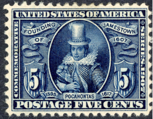 Offered is a genuine United States Scott #330 (1907 Jamestown Exposition Issue) featuring Pocahontas.