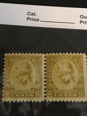 US Scott #713 Washington By St Memim (1932) Olive Bistre MNH****Line Pair