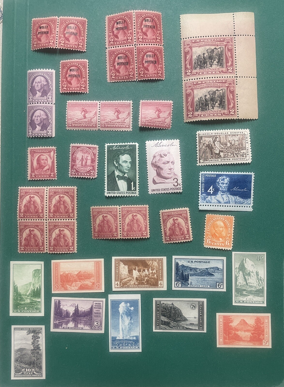 Scott #s 558, 646 (block, pair, single), 641 (pair), 657 (block, pair, single), 683, 690, 716 (pair, single), 722 (pair), 756-765, 1113, 1114, 1115, and 1117