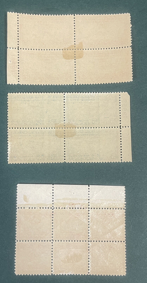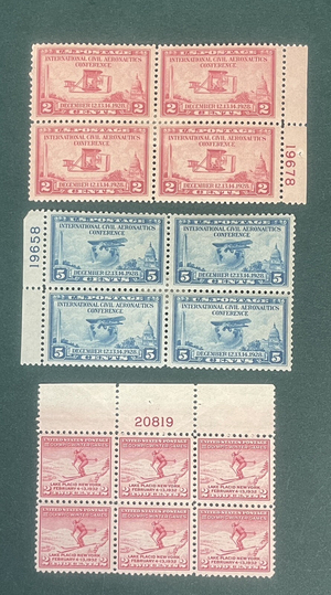 US Stamps plate blocks 649, 650, and 716. Mint Hinged.