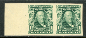 USA 1906 Franklin 1¢ Green Imperf Margin Scott #314 MNH U412