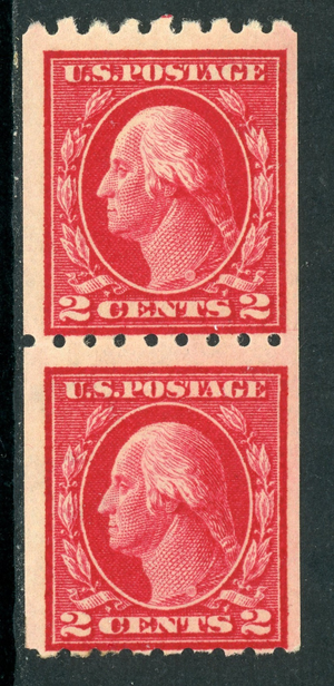 USA 1912 Washington 2¢ Carmine TYPE 1 Perf 8½ Coil Pair SL Wmk Sc #411 MNH C572