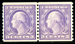 USA 1917 Washington 3¢ Type 1Perf 10 Coil Pair Rotary Unwmk Sc #493 Mint Q417