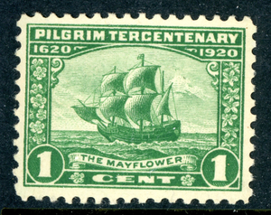 USA 1920 Pilgrim Tercentenary 1¢ Green Ship Perf 11 Sc #548 MNH Q790