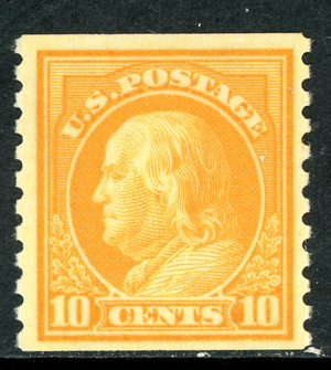 USA 1922 Franklin 10¢ Orange Yellow Unwmk Perf 10 Rotary Coil Sc #497 MNH Q409