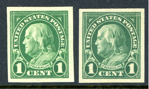 USA 1923 Franklin 1¢ Green & Dark Green Imperf Scott #675v MNH Q824