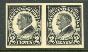 USA 1923 Harding 2¢ Black Imperf Pair Scott #611 MNH U41