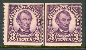 USA 1924 Fourth Bureau 3¢ Lincoln Perf 10 Vert Line Pair Scott # 600 Mint G674