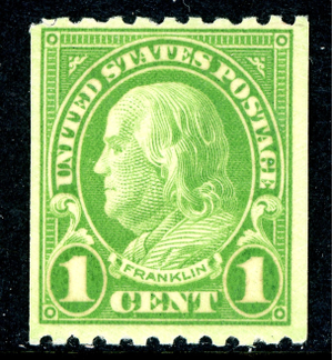 USA 1924 Franklin 1¢ Green Perf 10 Rotary Coil Single Scott 604 MNH Q848