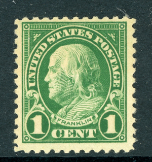 USA 1925 Franklin 1¢ Green Flat Plate Perf 11 Sc #552 MNH L852