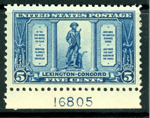 USA 1925 Lexington Concord 5¢ Blue PNS Scott #619 Mint M184