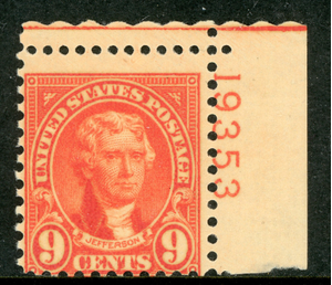 USA 1927 Jefferson 9¢ Orange Rotary Perf 11x10½ Scott 641 PNS MNH B385