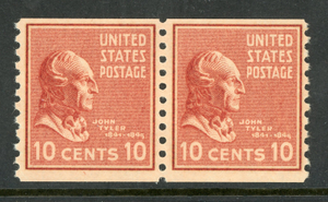 USA 1938 John Tyler $5.00 Brown Red Vertical Coil Pair Scott #847 MNH V738