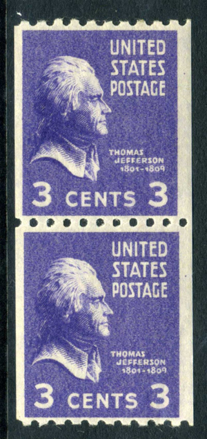 USA 1939 Prexie 3¢ Coil Pair Scott #851 MNH T913
