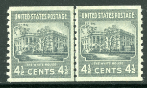 USA 1939 White House 4½¢ Presidential Coil Scott #844 Line Pair MNH N649