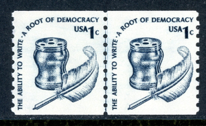 USA 1980 Quill and Ink 1¢ Scott #1811 Shiny Gum Line Pair MNH Q644