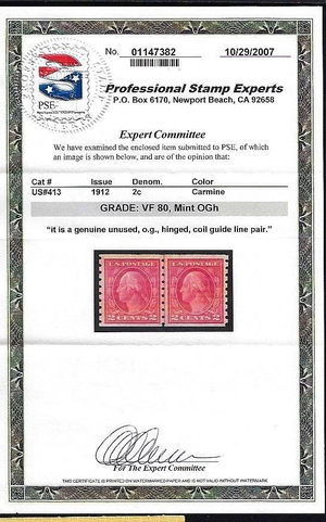 WCstamps: U.S. Scott #413 / VF, Mint OGh, 2007 PSE Cert Grade 80 / SMQ $275