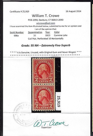 WCstamps: U.S. Scott #606a 2c Carmine XF/SUP Mint OGnh 2024 Crowe Cert SMQ $750