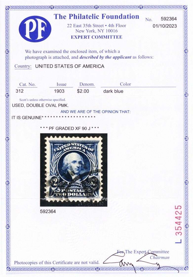312, Used $2 XF GEM - With Graded 90J Jumbo PFC Certificate * Stuart Katz