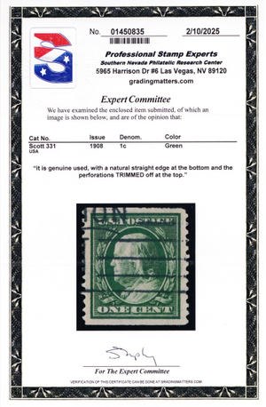 331, Used 1¢ Made to Look Like a Coil With PSE Certificate * Stuart Katz