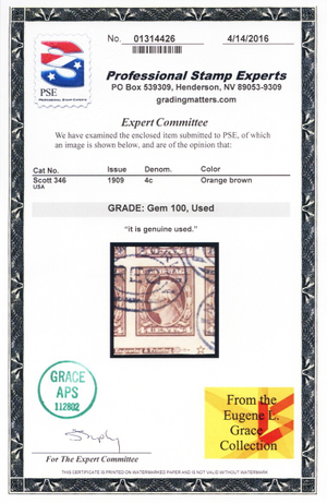 346, Used 4¢ Superb - PSE Certificate Graded 100 * Stuart Katz