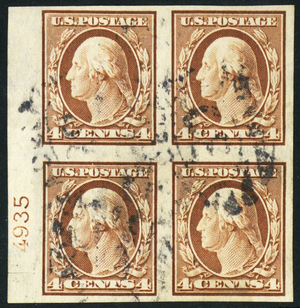 346, Used 4¢ VF Block of Four With PL# * Stuart Katz