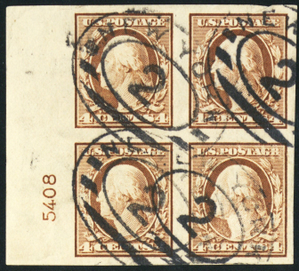 346, Used 4¢ XF Block of Four With PL# * Stuart Katz