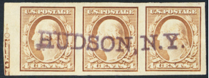 346, Used 4¢ XF Strip of Three Stamps With Imprint * Stuart Katz