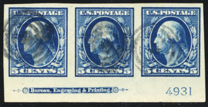 347, Used XF 5¢ PL# And Imprint Strip of Three - Stuart Katz