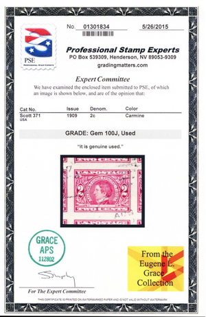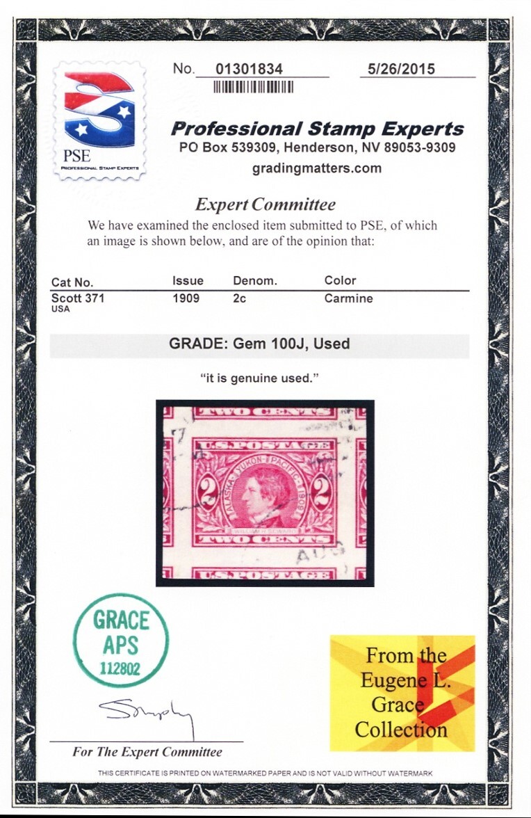 371, Used 2¢ Superb JUMBO - PSE Certificate Graded 100J * Stuart Katz