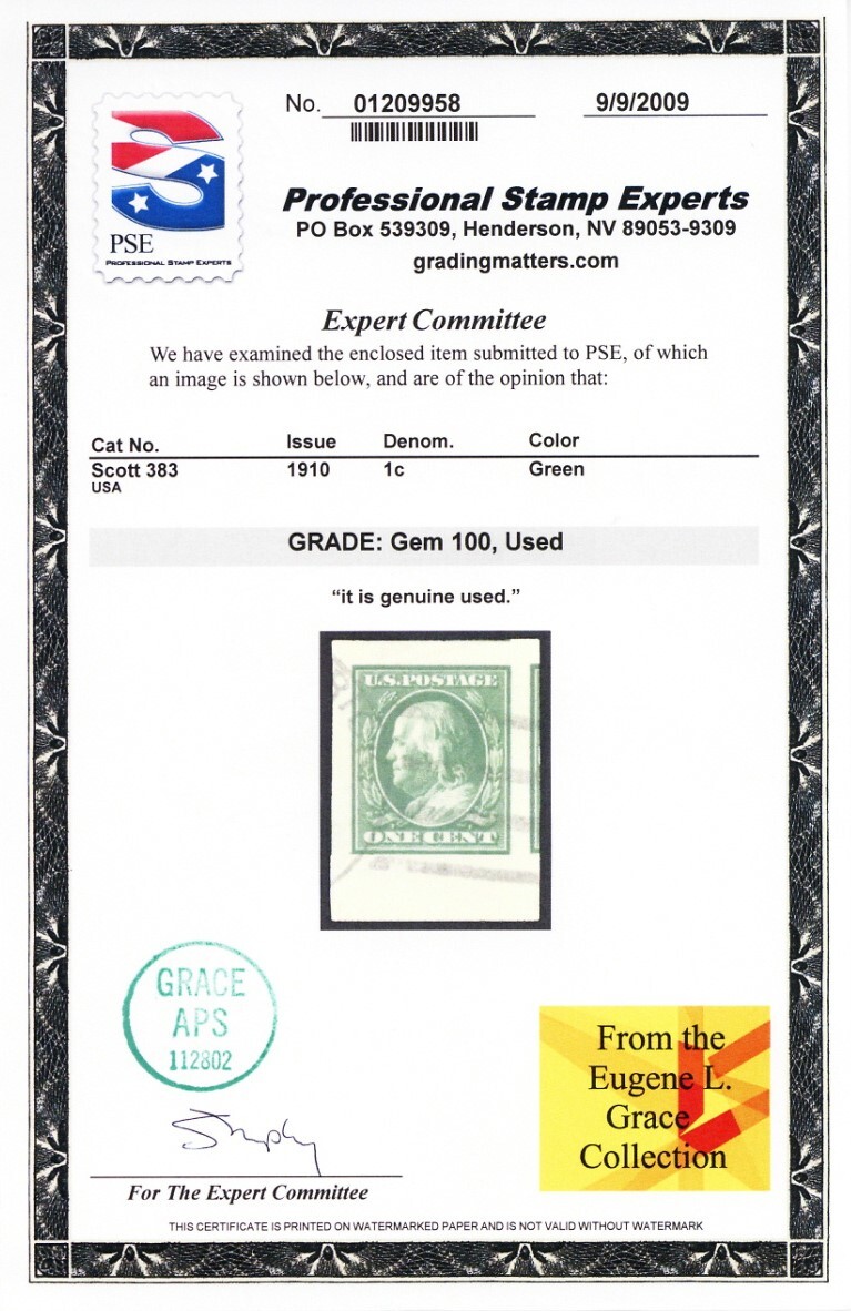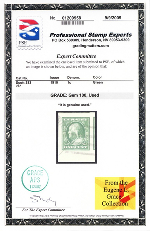 383, Used 1¢ Superb - PSE Certificate Graded 100 * Stuart Katz