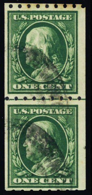 390, Used 1¢ Coil Line Pair - SCV $125.00 * Stuart Katz