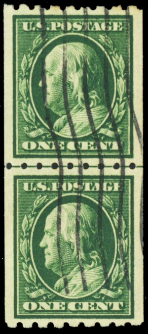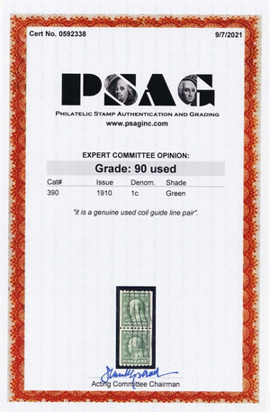 390, Used 1¢ Coil Line Pair With PSAG Graded 90 Certificate - Stuart Katz