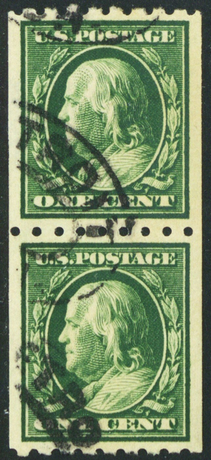 390, Used 1¢ Coil Pair Superb With PSAG Graded 98 Certificate - Stuart Katz
