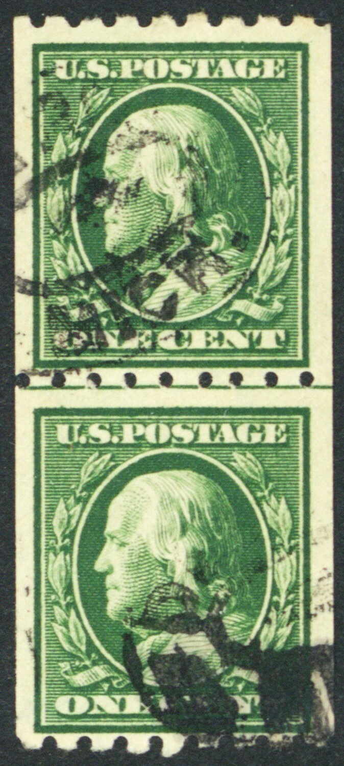 390, Used 1¢ VF RARE Coil Line Pair - Stuart Katz