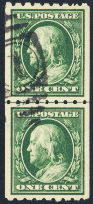 390, Used 1¢ VF/XF Genuine Coil Line Pair * Stuart Katz