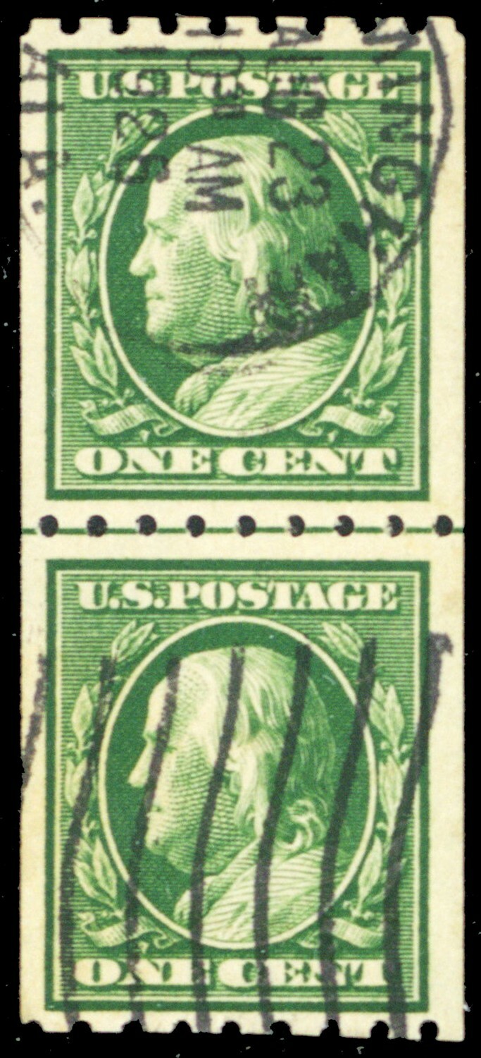 390, Used 1¢ VF/XF RARE Coil Line Pair - Stuart Katz