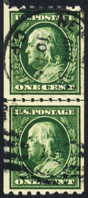 390, Used VF 1¢ Genuine Coil Line Pair With PF Certificate * Stuart Katz