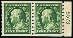 392, Used 1¢ Coil Pair With PL# 5573 Attached - RARE! * Stuart Katz