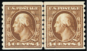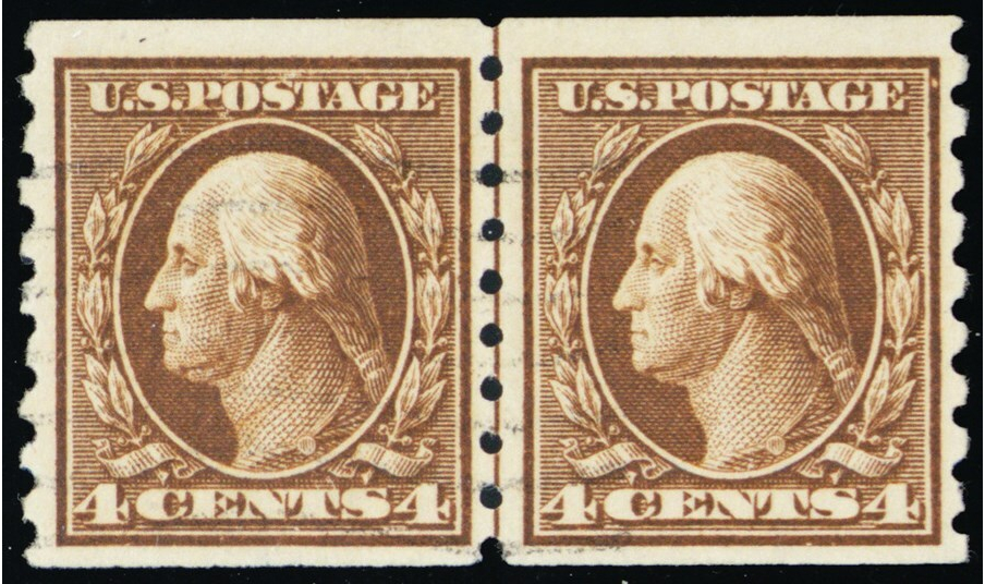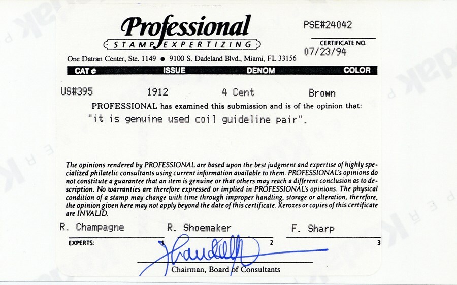 395, Used VF 4¢ Coil Line Pair Scarce & Genuine! PSE Certificate Stuart Katz