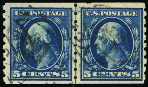 396, Used 5¢ RARE VF Coil Line Pair CV $825.00 - Stuart Katz