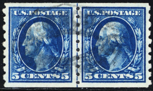 396, Used 5¢ XF/Superb Line Pair With Graded 95 PFC Cert SMQ $3500 - Stuart Katz
