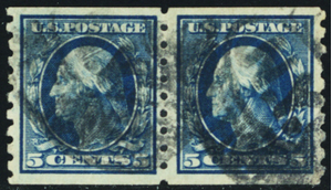 396, Used VF 5¢ Scarce Coil Pair * Stuart Katz