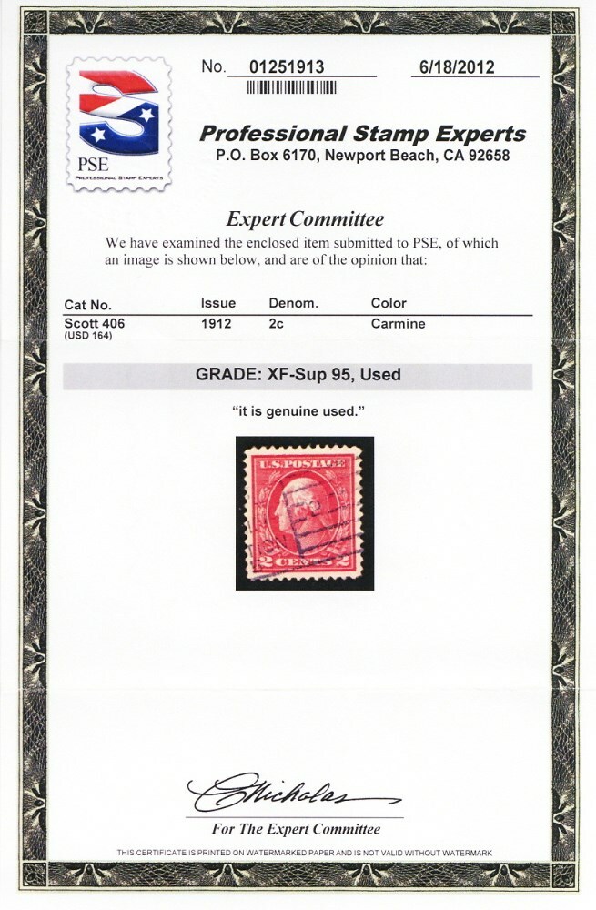 406, Used 2¢ XF With Graded 95 PSE Certificate -- Stuart Katz