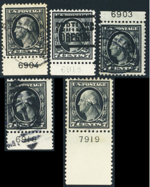 407, Used 7¢ Five Stamps With All Different PL#'s * Stuart Katz