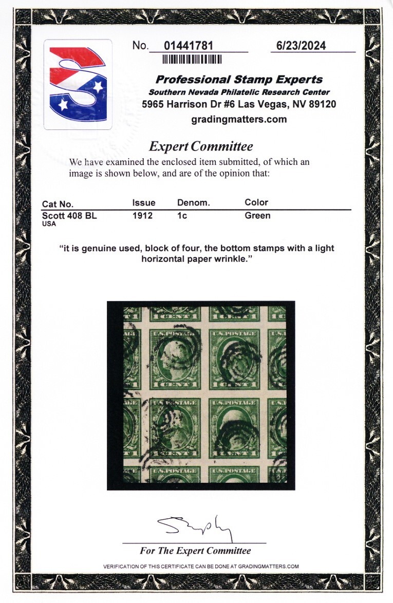 408, Used 1¢ Block With HUGE Jumbo Margins With PSE Certificate - Stuart Katz