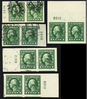 408, Used 1¢ Five Superb Pair's With PL#'s * Stuart Katz